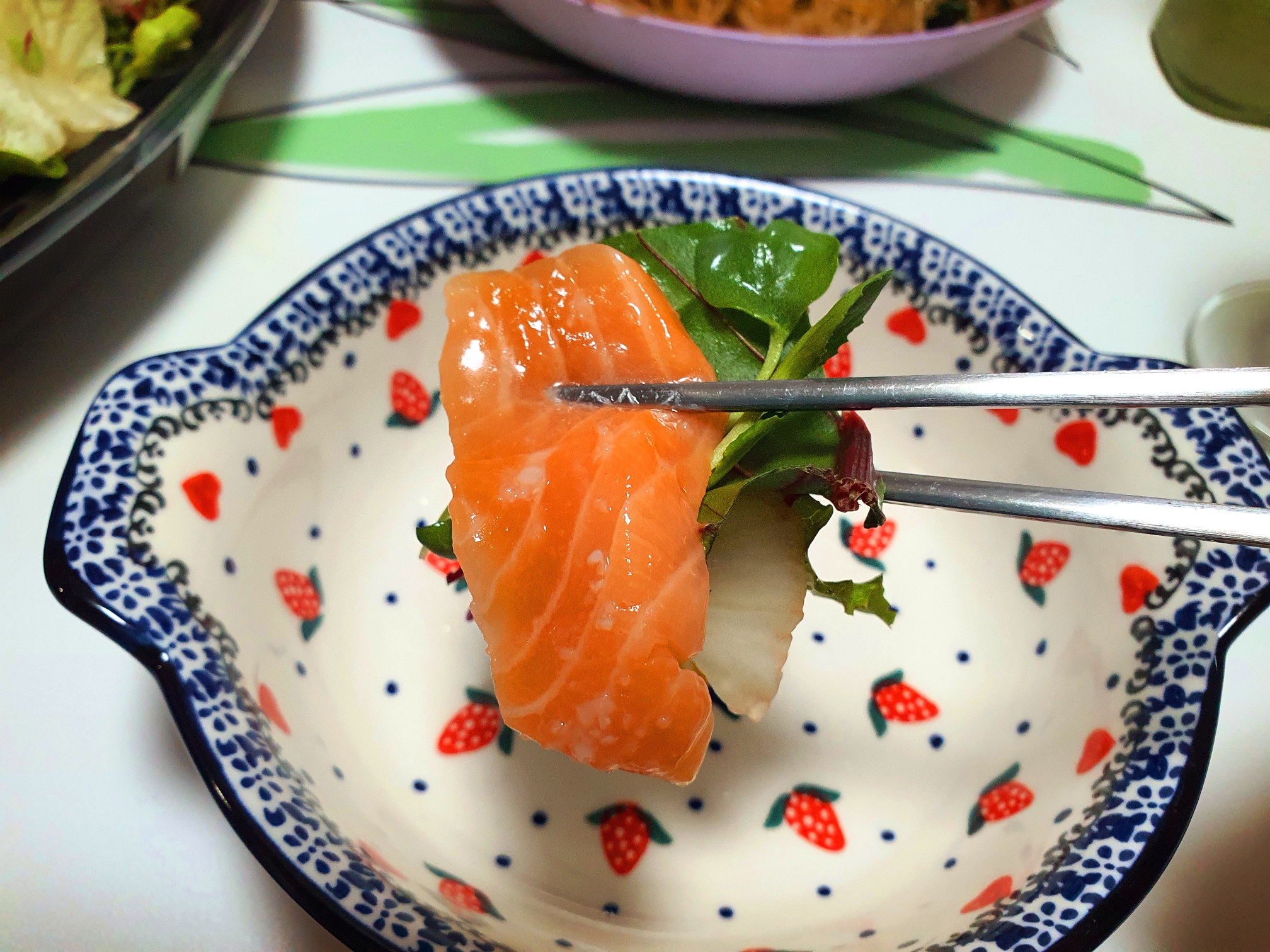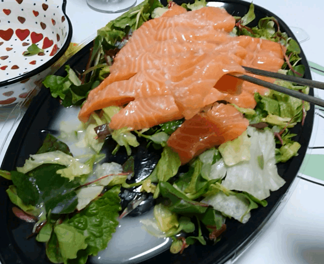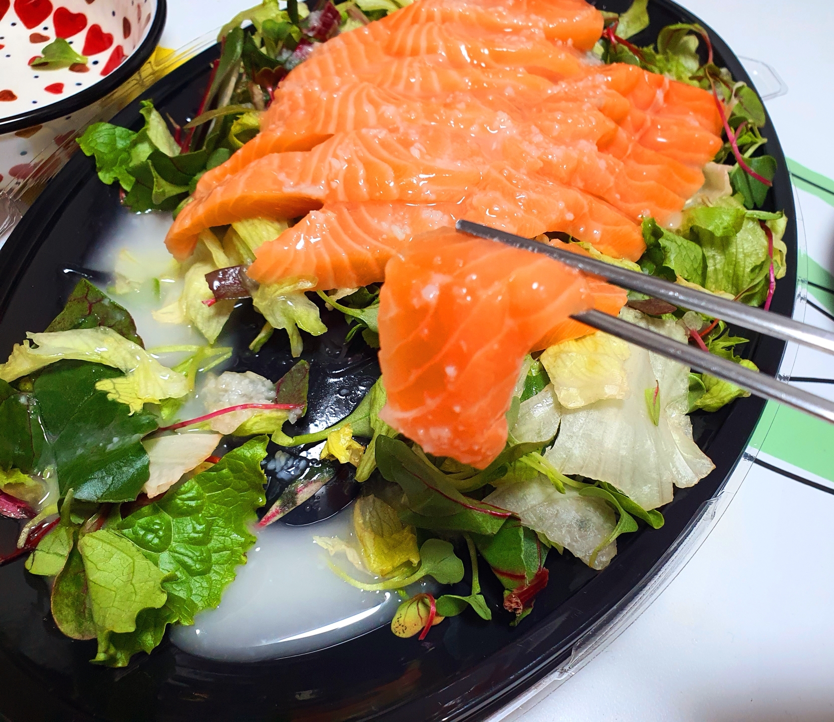 이렇게 연어회만 집어서 먹어도 맛있구요? 😋
