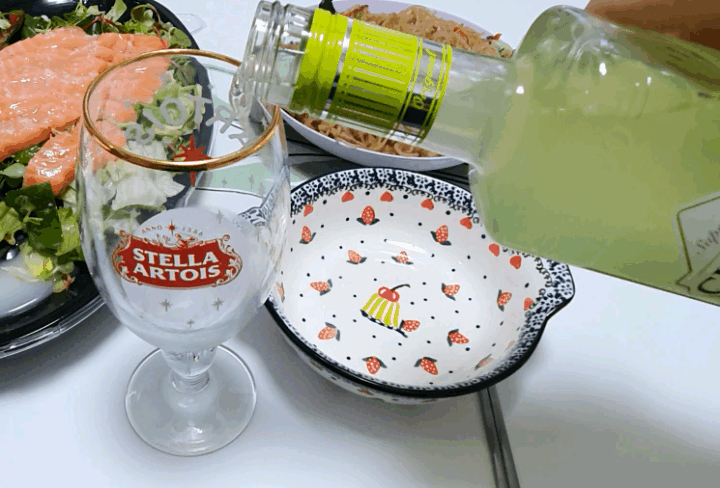 상콤한 소스를 연어회 위에 뿌려 줍니다. 😋