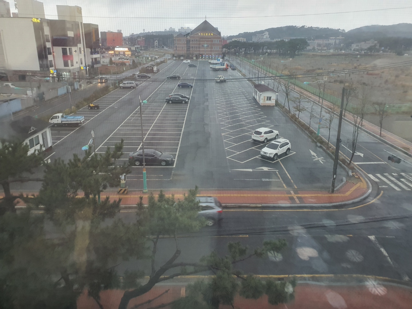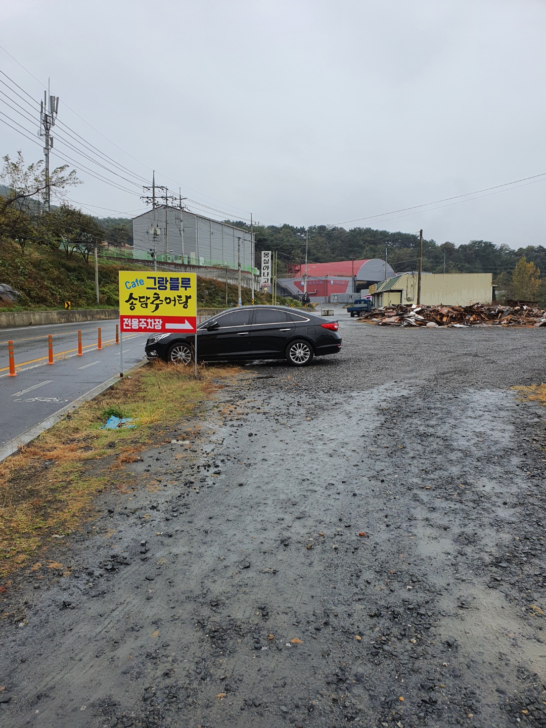 바로 앞에 커다란 주차장이 있어서