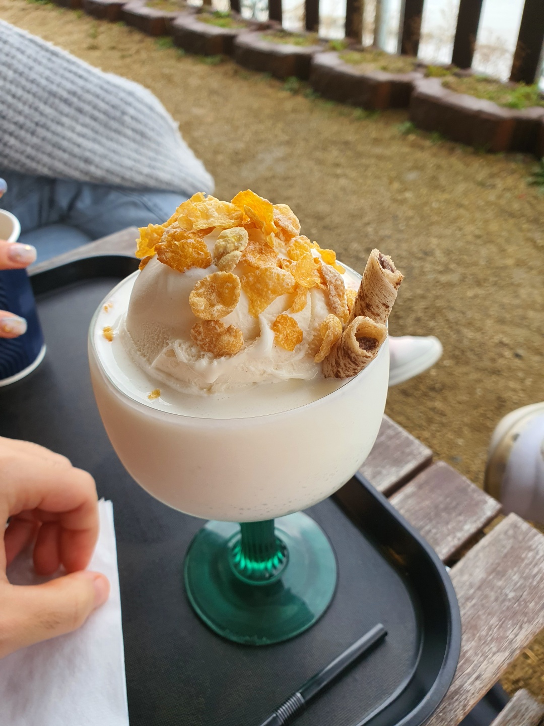앉을 곳 이없어서 야외로 나왔습니다.