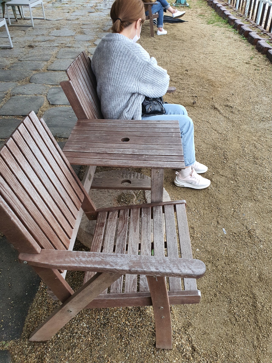 저렇게 야외에 앉아서 잠깐 쉬어줬습니다.