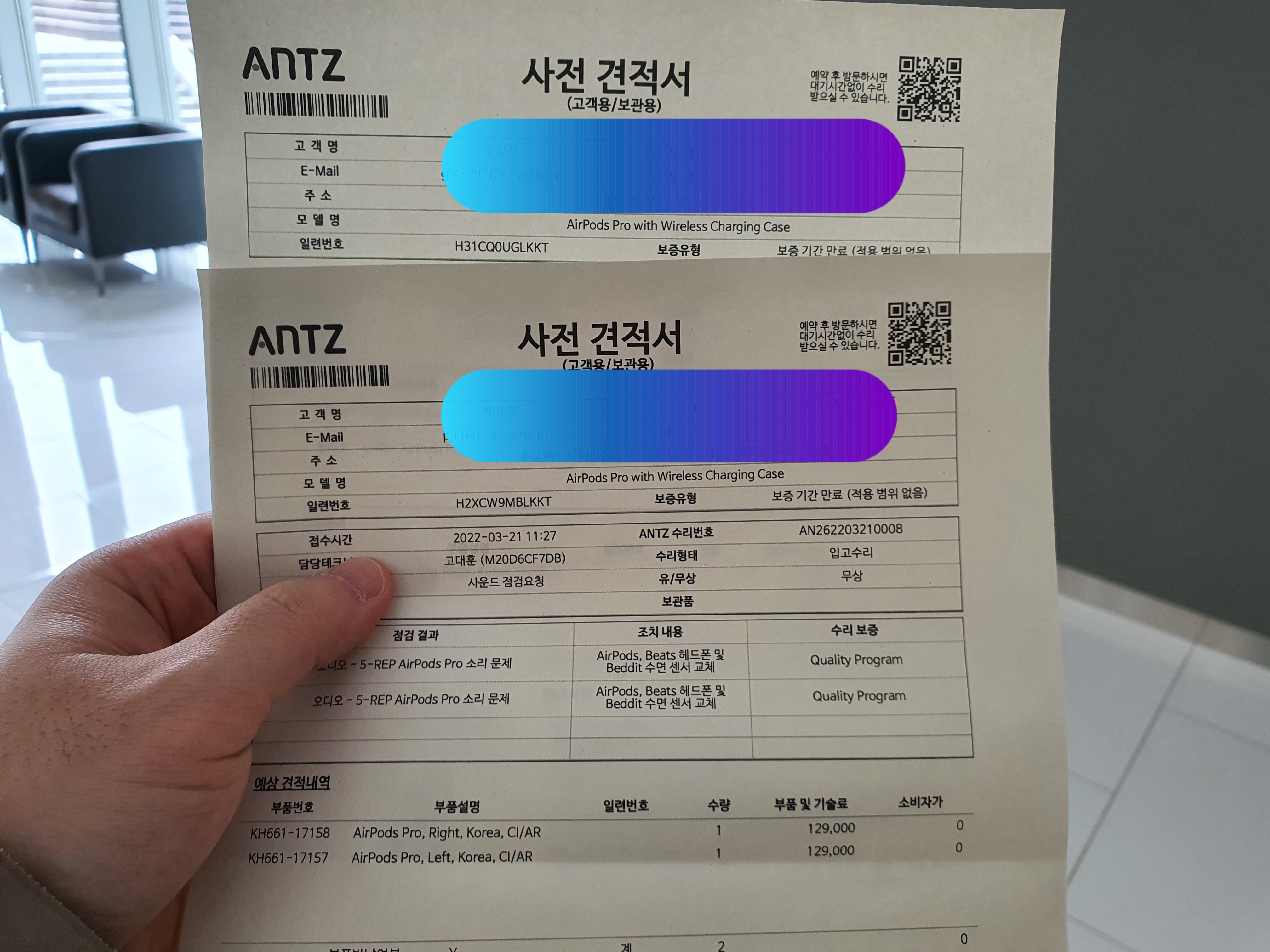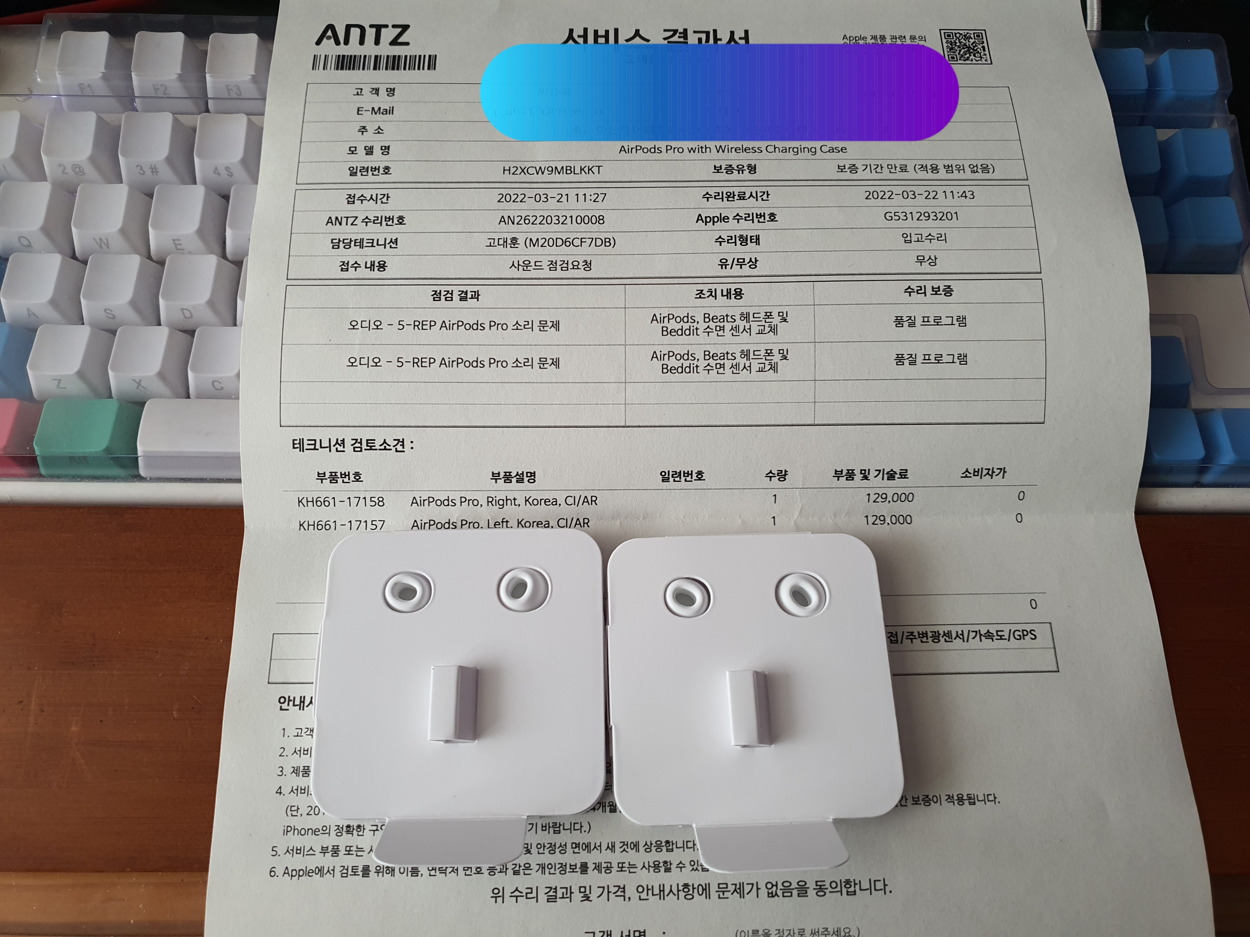 드디어 에어팟프로 무상 리퍼를 받게 됐어요.