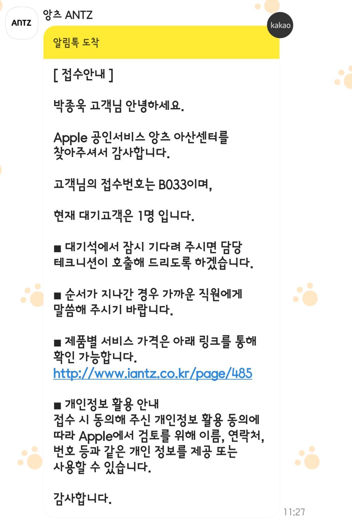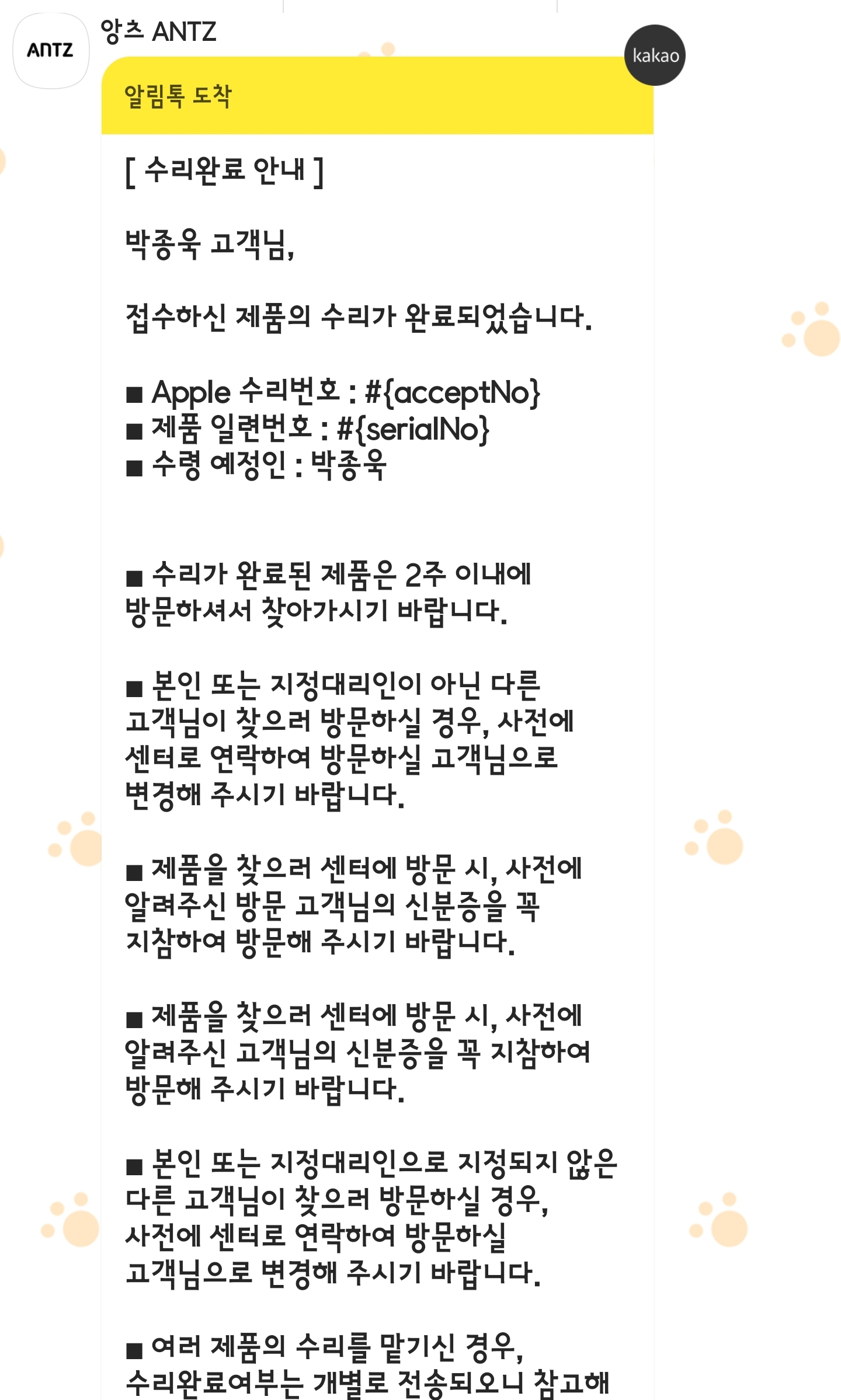 다음 날에 바로 수리 완료 알람이 왔어요.